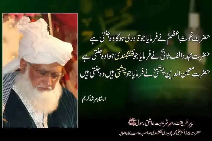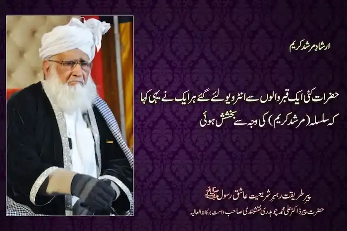 EIlahi Bahurmat BaBarkat Zahda tul Fuqaha Siraj ul Ashqeen Badrul Millat Sahib e Shariat wa Haqeeqat al Marfat Hazrat Pir Dr.Ali Muhammad Naqshbandi Mujaddi Damat barakatu wa Anayat Ameen Summa Ameen!